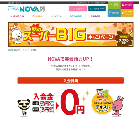 いつでも「入会金0円」実績のない「通常入会金」表示に有利誤認。NOVAランゲージカンパニーに措置命令 (消費者庁 2025/10/17)